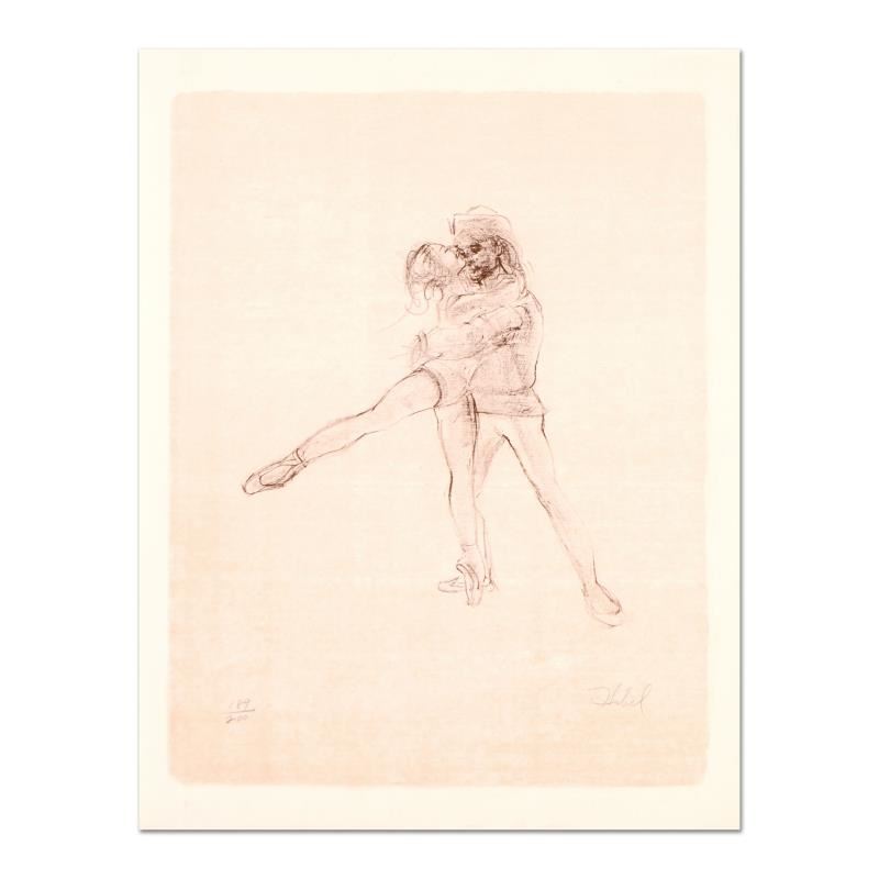 "Pas de Deux" is a limited edition lithograph on paper by Edna Hibel (1917-2014), numbered and hand signed by the artist. Includes Certificate of Authenticity. Measures approx. 12.5" x 16.5" (border), 11" x 14.5" (image).