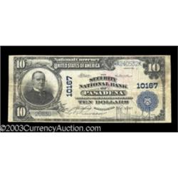 Pasadena, CA $10 1902 Plain Back Fr. 628 The Security NB
