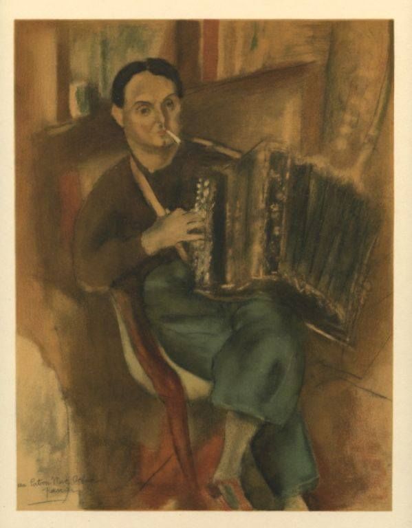 Pascin "Portrait De Pierre Mac Orlan" Lithograph. Printed In Paris In 1954 By The Legendary Atelier Of Mourlot Frères. Size: 12 1/4 X 9 1/2 Inches; 315 X 245mm- Professionally Framed & Matted - Comes With Certificate - -