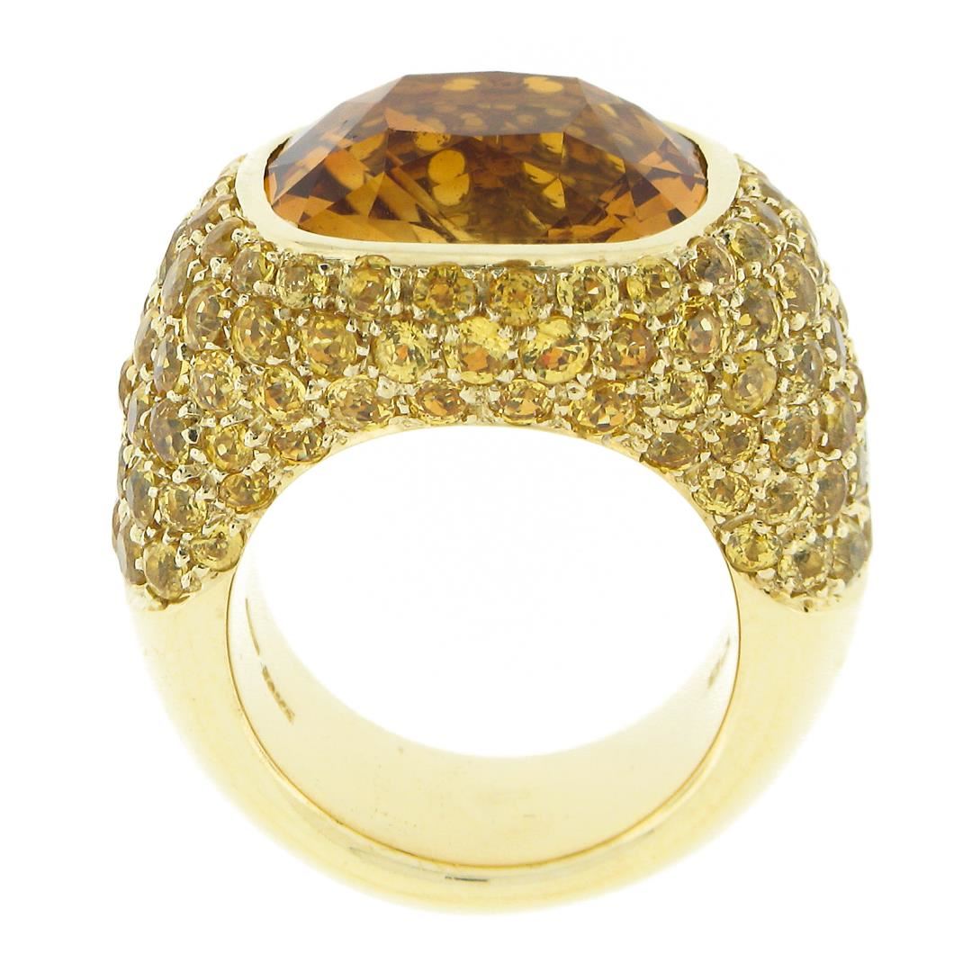 Pasqual Bruni 18K Yellow Gold Large Citrine w/ Yellow Sapphires Cocktail Ring
