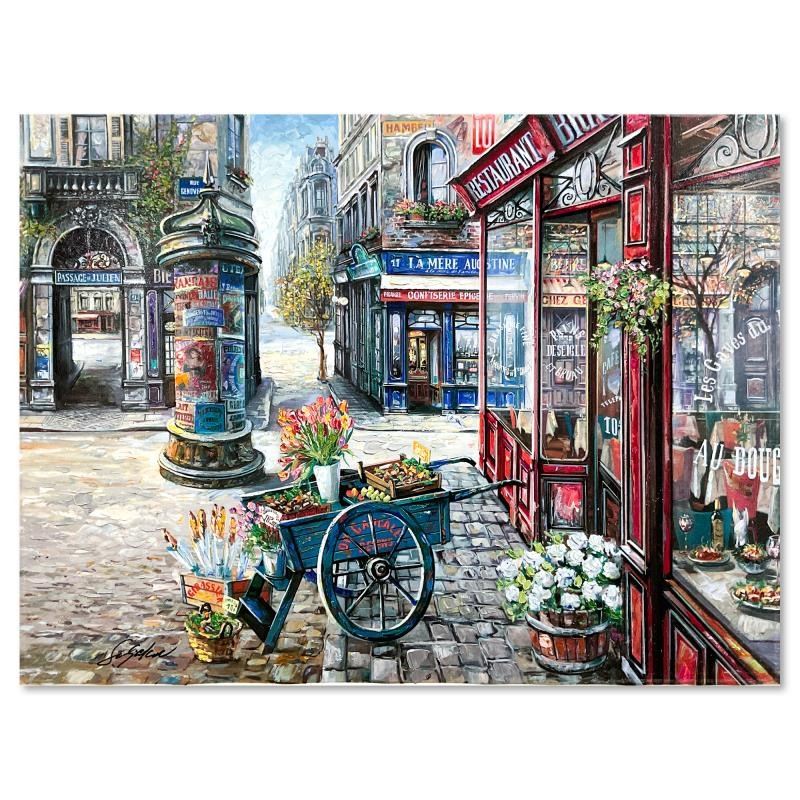 "Passage Le Julien" is a hand embellished limited edition publisher's proof on stretched canvas by Vadik Suljakov, numbered inverso 1/5 and hand signed by the artist. Includes Letter of Authenticity. Measures approx. 18" x 24" (image). There may be minor