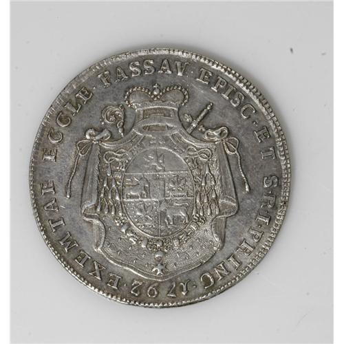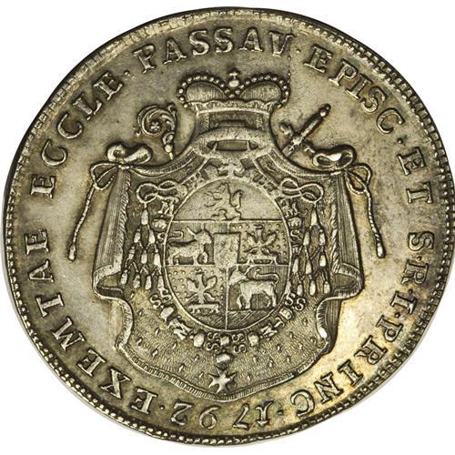 <B>Passau. Joseph Franz Anton Taler 1792,</B></I> KM-C10, Dav-2526, Choice XF with even gray patina, one minor rim bump, and edge flaw.<BR><I>From the Blue Ridge Collection</B></I><BR><BR><b>Shipping:</b> Coin/Currency (<a target="_blank" href="http://www.heritageauctions.com/common/shipping.php">view shipping information</a>)