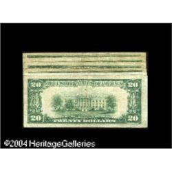 Passel of FRBNs.Fr. 1850-D $5 1929 Federal Reserve Bank <B>Passel of FRBNs.</B></I><BR>Fr. 1850-D $5 1929 Federal Reserve Bank Note. Fine<BR>Fr. 1850-F $5 1929 Federal Reserve Bank Note. Fine<BR>Fr. 1850-J $5 1929 Federal Reserve Bank Note. VG<BR>Fr. 1860-B $10 1929 Federal Reserve Bank Note. VG<BR>Fr. 1870-G $20 1929 Federal Reserve Bank Note. VF<BR>Fr. 1870-I $20 1929 Federal Reserve Bank Note. VF.<BR> 6 notes <BR><BR><B>Important notice:</B> Heritage usually auctions material at the rate of 200-250 lots per hour. On some occasions eBay Live bid software or the Internet may not be able to keep up with the pace of the auction. We recommend placing a realistic absentee bid now as insurance to avoid disappointment. Occasionally the auctioneer may eliminate or reject an eBay Live bid, and the auctioneer may also reopen a lot after the close of the eBay live bidding (usually because we missed an audience bid), and may reject your bid even if it shows you as the winning bidder. By bidding via eBay Live, you agree that Heritage may award the lot to another bidder at its sole discretion under the circumstances described above or any other reasonable circumstances. Since eBay bids are not shown to us until we open the lot on the floor, we treat those bids just like floor bids. In most cases the floor responds before the eBay bid is presented to us, due to Internet lag time, so for consistency we have made it a policy that floor bids are always considered first over tie eBay live bids. Also please note that all Heritage lots purchased through eBay Live carry a 20% Buyer's Premium. Please make sure you read the Terms and Conditions before you bid. This lot is being auctioned in conjunction with a live floor auction by Heritage Galleries & Auctioneers. All final auction and invoice information will be supplied by Heritage Galleries & Auctioneers, and all other information should be considered preliminary. Lot:16280