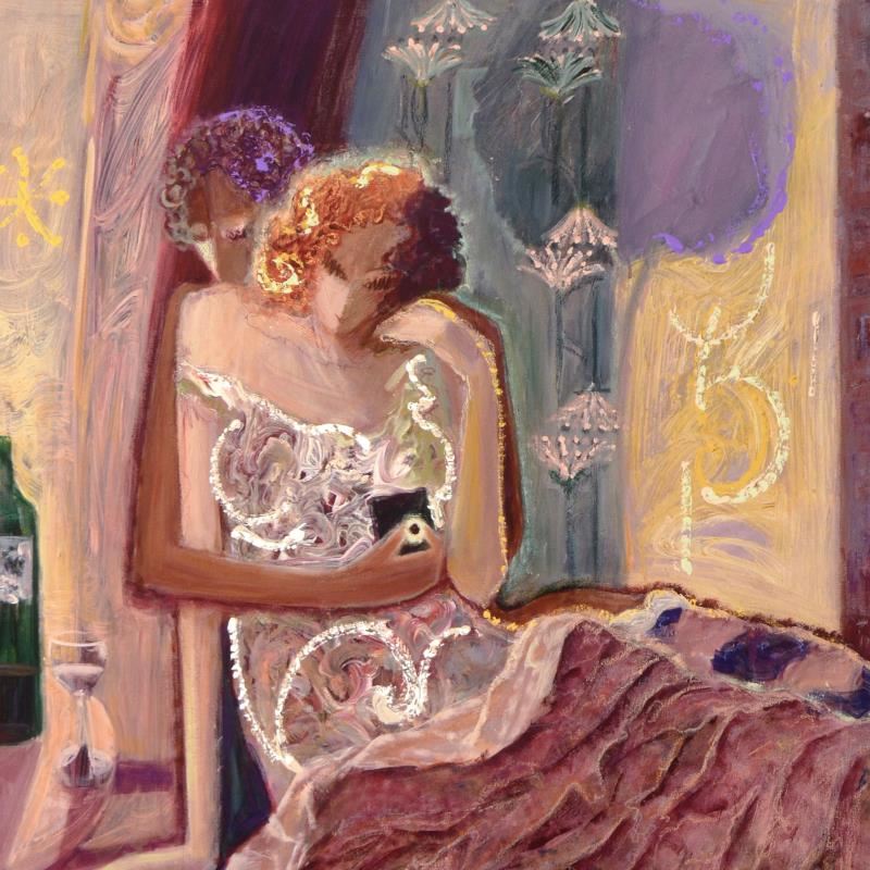 "Passionate Night" is a limited edition hand embellished giclee on canvas by Sabzi, numbered and hand signed by the artist. Includes Certificate of Authenticity. Measures approx. 30" x 39.5" (image).