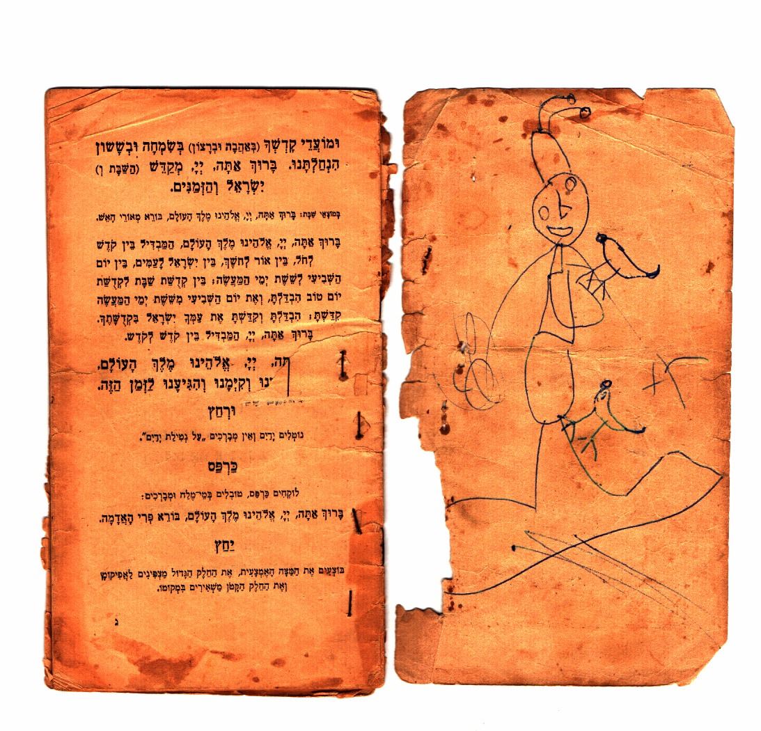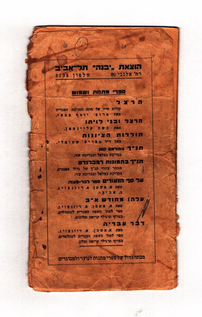 Passover Haggadah, published by 'Yavneh' Tel Aviv, the Committee for the Cyprus Golim, founded by the Jewish Agency, the National Knesset Committee in the Land of Israel, in collaboration with the Joint, undated, dimensions: 22 cm. Yeari 2371. Haggadah Thesaurus 4110. Paperback, 32 pp. Reasonable condition: loose title page, page margins torn, some foxing and yellowing, color scribbles on both sides of title page and on the backcover and endpaper.