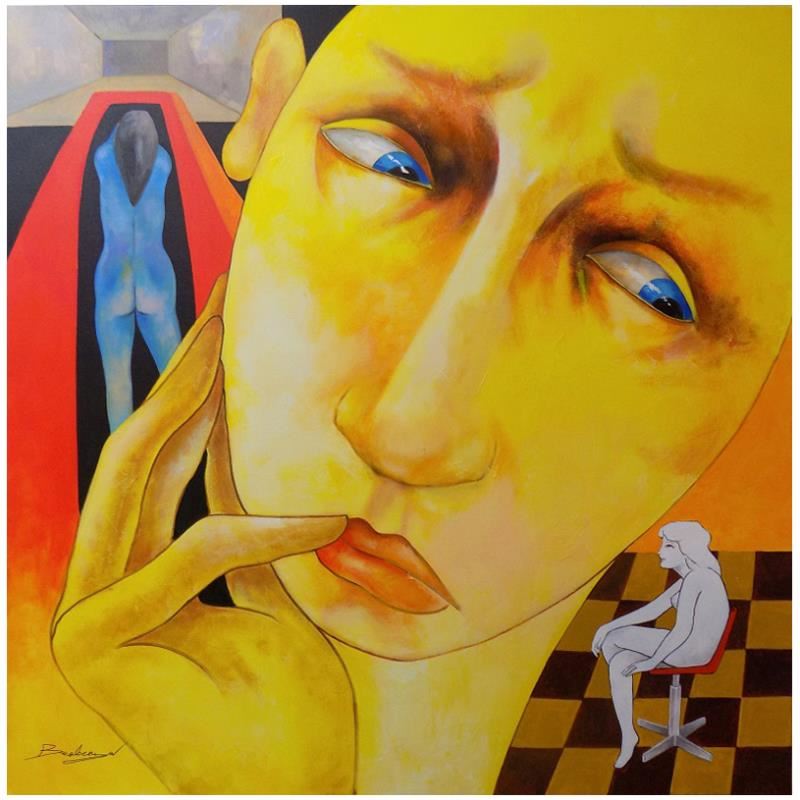 "Past, Present And Future" is an original acrylic mixed media painting on canvas by Ara Berberyan. The piece is hand signed and comes with a letter of authenticity. Measures approximately 48" x 48".