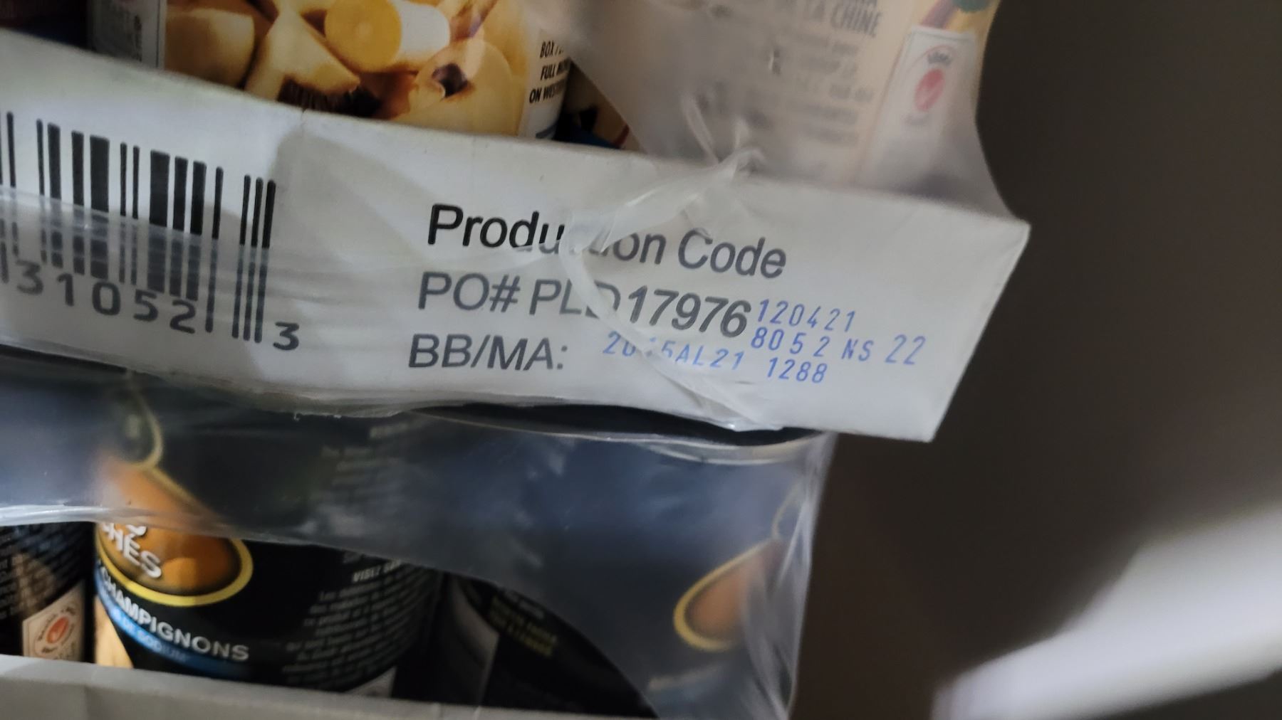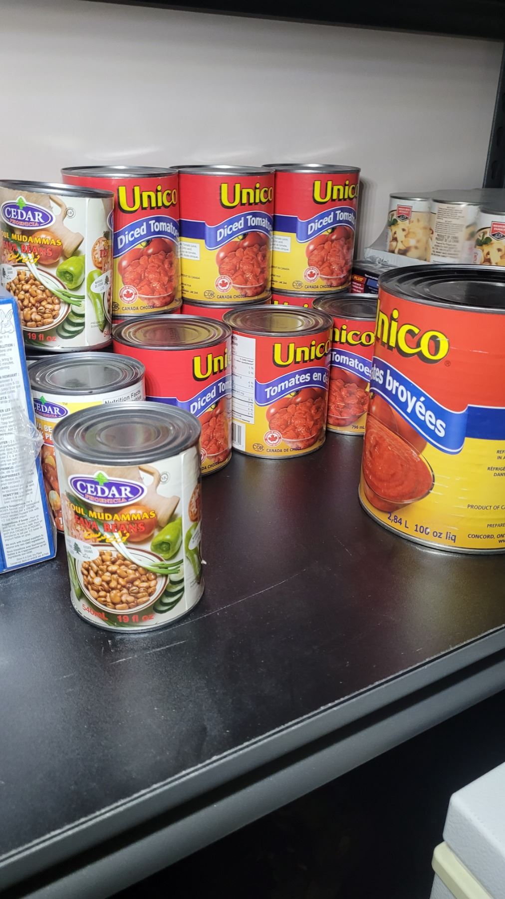 Pasta and canned food. Pick up 11am.