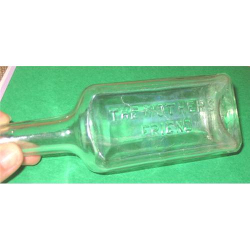 Circa:1840-1870 PASTEL GREEN Colored, ANTIQUE Apothecary Bottle. Discovered in the Rocky Mountains near Aspen, CO. The bottle is EMBOSSED on 3 of it's 4 sides. Across the front is "THE MOTHER'S FRIEND"; on 1 side is "BRADFIELD REG'L. CO."; on the opposite side is "ATLANTA,GA." (Image's 1-3) There is no embossing on the back of this apothecary bottle. The bottle has an APPLIED DOUBLE COLLAR LIP & a SMOOTH BASE (smooth but slightly indented + it overlaps onto the BACK of the bottle). Due to it's hand blown crafting,this bottle has several small bubbles & quite a number of really pretty large bubbles. This bottle's rectangular in shape. DIMENSIONS: 7.75" X 2.25" WEIGHT 7.9 ounces. This antique medicine bottle is in NEAR MINT CONDITION. There is a barely noticeable, artistic looking, chemical leaching stain inside the back of the bottle & there is a ping & a flash on its BASE edge, caused when the bottle was created (Image 4). These marks do NOT detract from the aesthetic appearance & natural Pastel Green beauty of this one of a kind, Antique Apothecary Bottle.