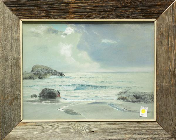 Framed pastel, Moonlight Beach Scene, American School (20th century), unsigned, overall: 25.75''h x 31.25''w