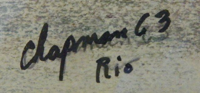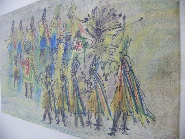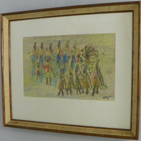 Titled "Rio" Mardi Gras Procession. Approx. 18" x 11.5" image, 26.5" x 22.5" framed. From a Harrison, NY estate. Please read our terms of sale.