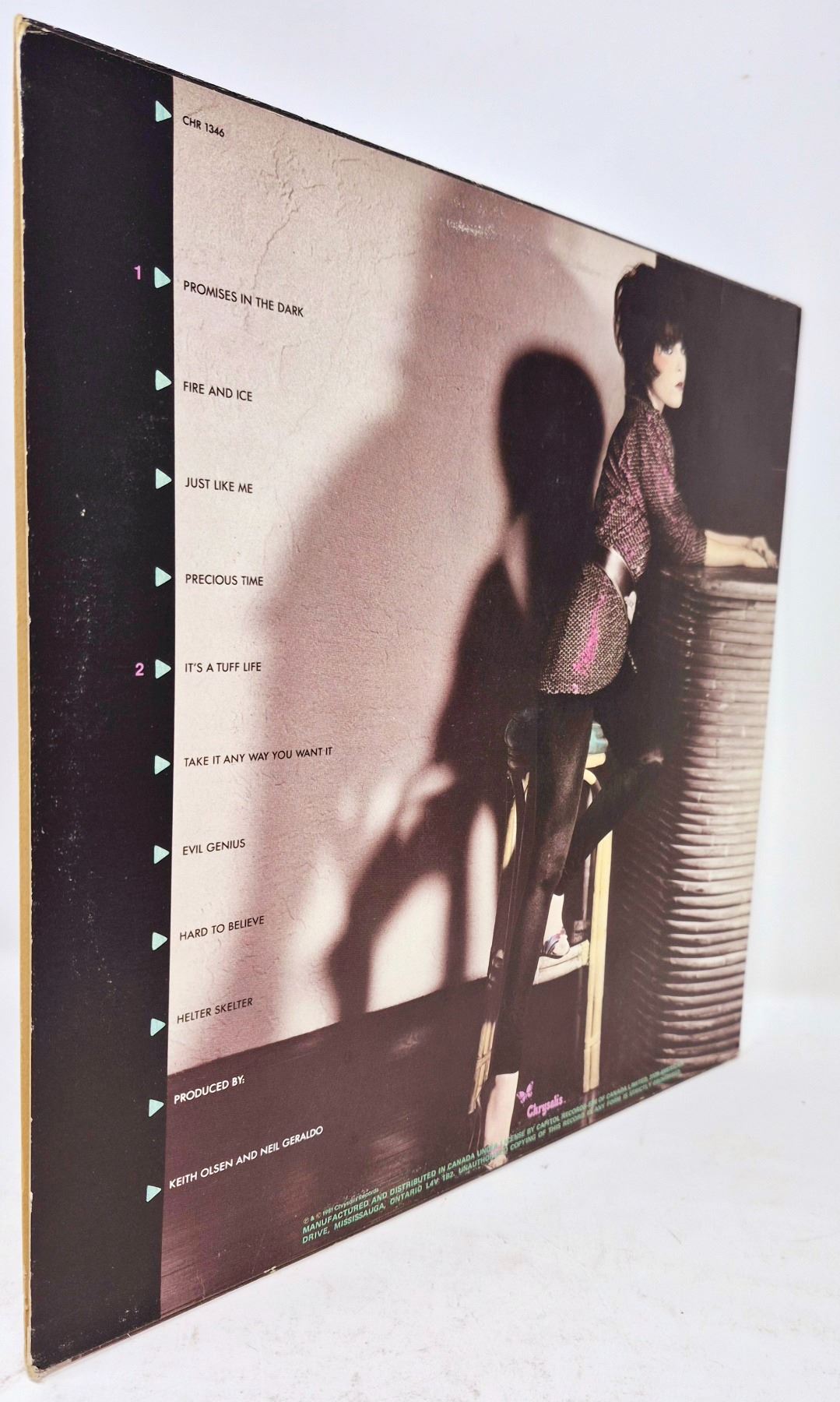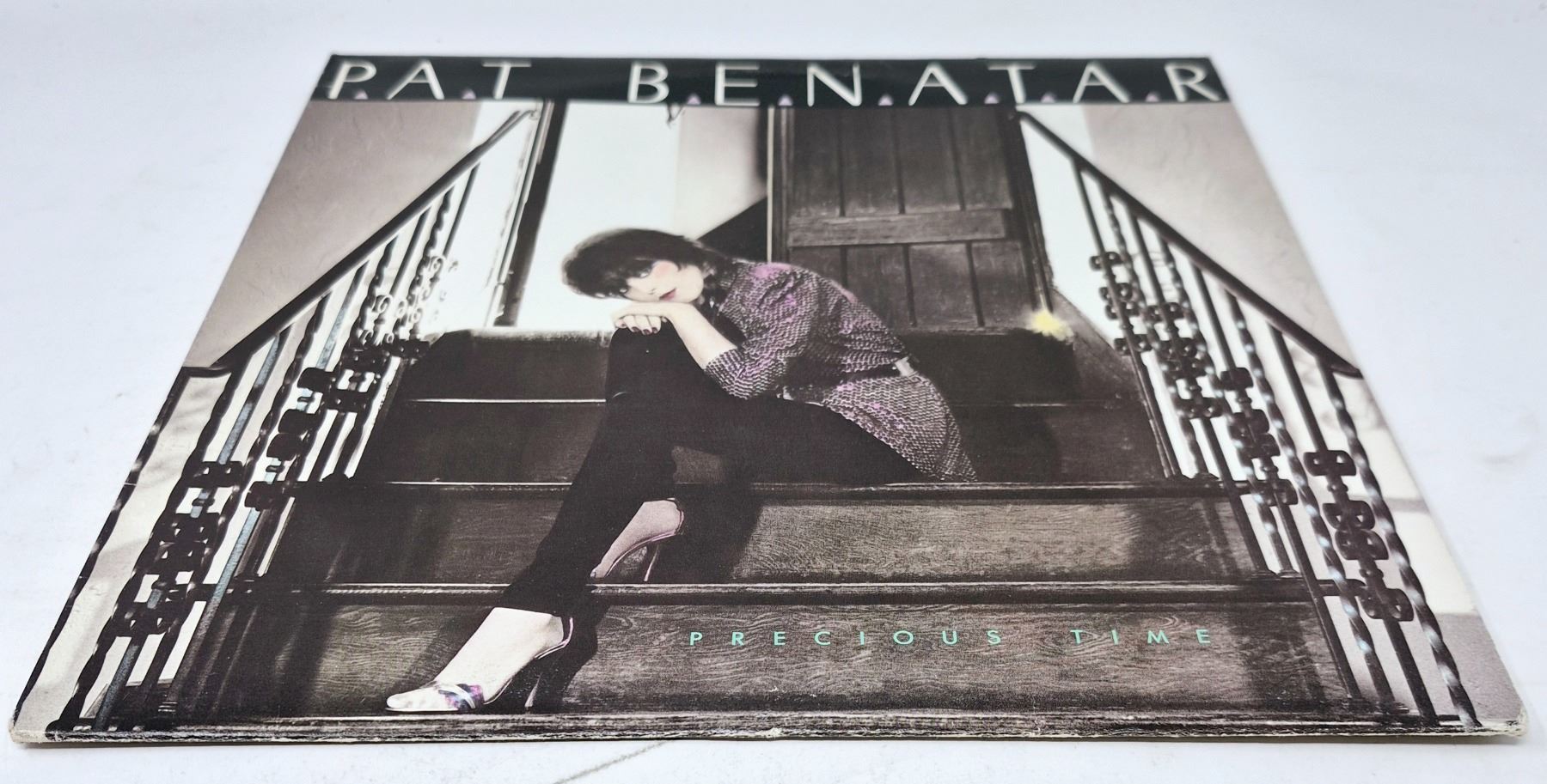 'Precious Time' by Pat Benatar, 1981 Chrysalis Records release. Features the hit single 'Promises in the Dark'. A high-energy, chart-topping album showcasing Benatar's powerful vocals. Cover in clean condition; vinyl VG+.