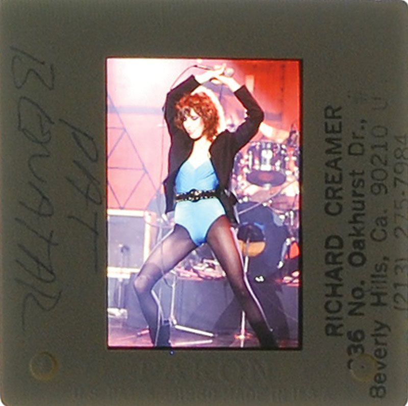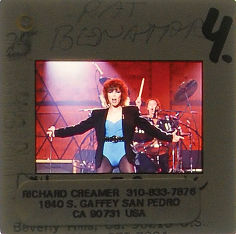 Three original unsigned color slides, two of Benatar performing and one studio shot, each image measuring 1.25 x 1 inside a 2 x 2 plastic mount. Mounts bear ink and pencil notations, and stamps from the photographer, Richard Creamer. In overall fine condition. Provenance: Richard Creamer Estate. Creamer was a famous Rolling Stone photographer very active and well known in the 1970s Los Angeles Rock scene. The collection of Creamer photos offered in this auction were kept in his personal collection and several appeared in magazines.