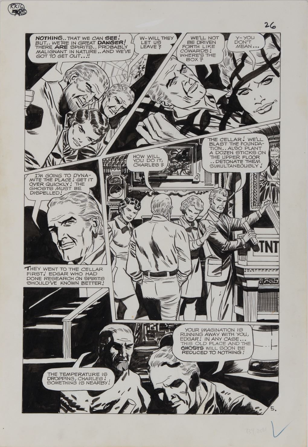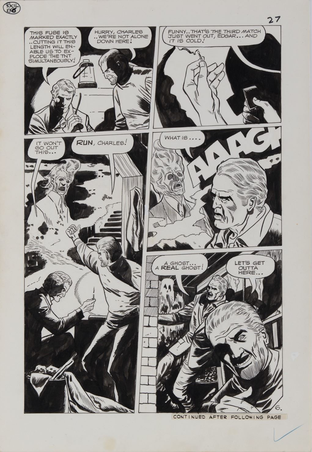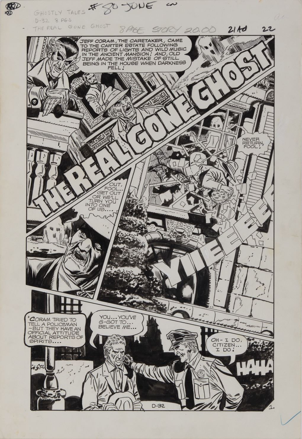 121. Pat Boyette original artwork for Ghostly Tales #80 complete 8-page story "The Real Gone Ghost". (Charlton, 1970) Accomplished in pencil and ink on 11.5 x 17 in. art board. This is an attractive and nicely drawn complete story from the underrated Charlton line. Well paced with a fantastic pay off. A great opportunity to pick up acomplete vintage horror story. In very good condition. $400 - $600