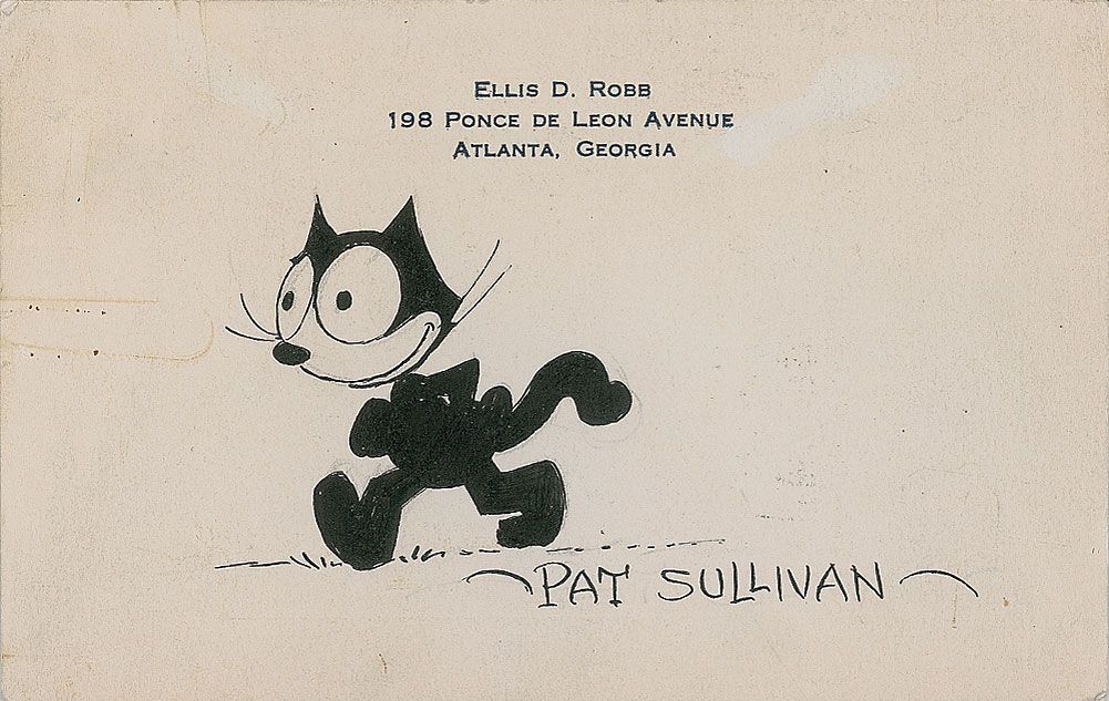 Cartoonist and film producer (1887–1933) whose studio produced the Felix the Cat cartoons. Whether Sullivan or his top animator, Otto Messmer, originally created the character is up for dispute. Original vintage signed ink sketch of Felix the Cat on an of