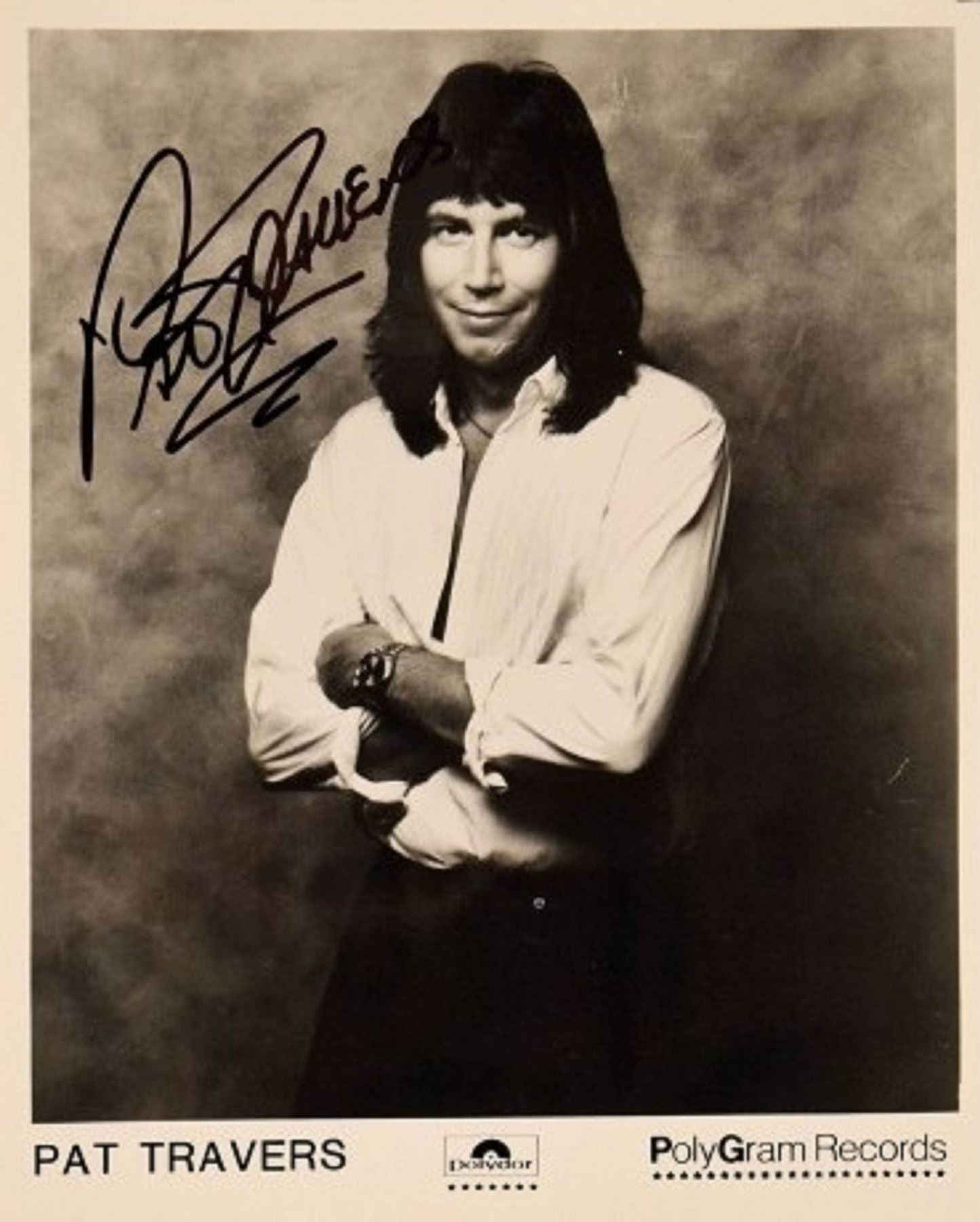 8 in. by 10 in. PolyGram Records Black and white promotional photo autographed by Pat Travers.