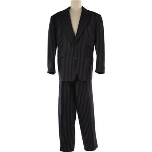 <B>"Pat and Mike" Spencer Tracy Worn Suit.</B></I> This fitted, gray pin-stripe suit was worn by actor Spencer Tracy in the romantic comedy "Pat and Mike." Tracy played shady sports promoter Mike opposite long-time love Katharine Hepburn's flustered young athlete Pat. A MGM label with Tracy's name is sewn in the costume. The suit is in exceptional condition, especially considering its age.<BR><BR><b>Shipping:</b> Clothing, Costumes & Jerseys (<a target="_blank" href="http://www.heritageauctions.com/common/shipping.php">view shipping information</a>)