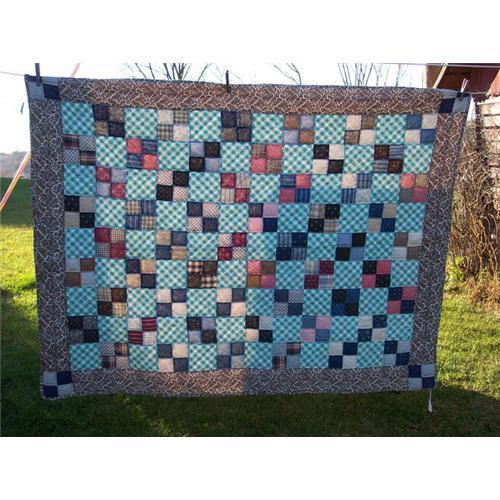 This is a sweet quilt.There was a paper pinned to this when I purchased it at a local auction.It says This 4in Patch pieces made by Ruth Matthes Gore-age 9.She had it finished in 1969.Pieces are many of My Mothers dresses,mine and Grandma Smiths.Never destroy.This quilt measures 66x50 and the backing material is not as old as the patches.So nice when you get info with a quilt.