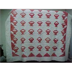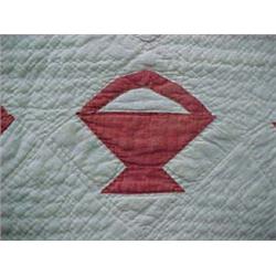 Patchwork quilt "Baskets" in red and white, late 19th C., 66" x 83", some wear