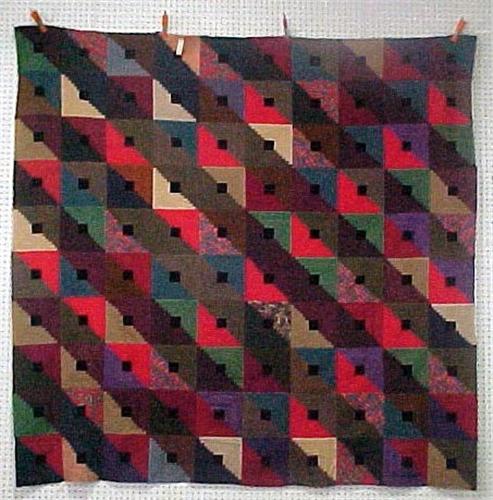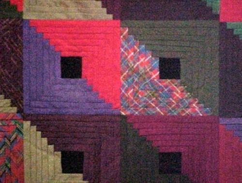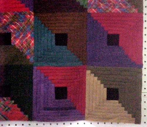 Patchwork quilt; "Log Cabin" hand stitched; backing not attached; measures 6' 11" x 6' 9"; early 20th C. (no visible defects)