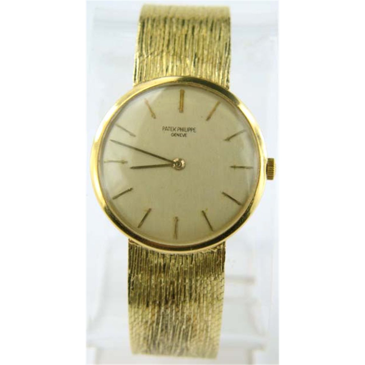 Patek Philippe 18K Yellow Gold Watch.The weight of the watch is 58.5 grams.The measurement of the watch's head is 33 mm in diameter.7 mm in thickness.The length of the watch is 7".