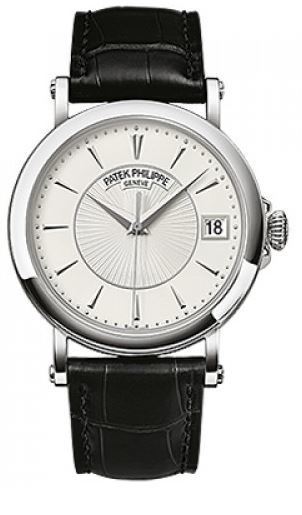 Model: 5153G-010 - CASE = [Material:18kt White Gold], [Case Diameter:38], [Bezel:Fixed], [Case Back:Solid], [Water Resistant:30 Meters - 100 Feet], [Crystal:Scratch Resistant Sapphire], DIAL = [Color:White with Index Hour Markers], MOVEMENT = [Type:Automatic], BAND = [Clasp:Deployment], [Type:Black Alligator Leather], (Usually ships in 1 to 2 weeks.)