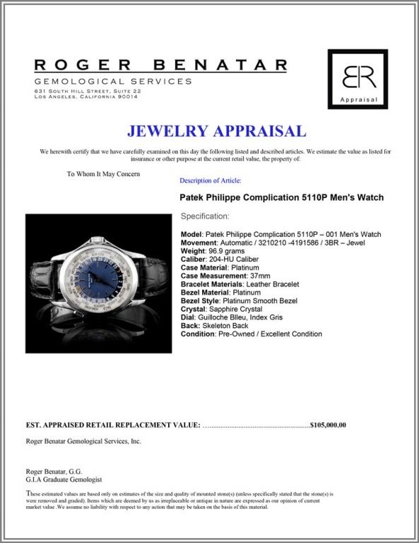 Model: Patek Philippe Complication 5110P Ð 001 Men's Watch