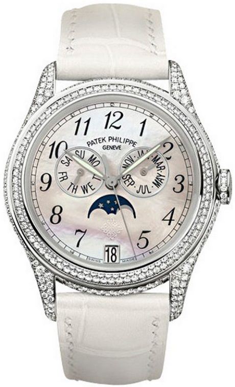 Model: 4937G-001 - CASE = [Material:18kt White Gold Set With Diamonds], [Case Diameter:37], [Bezel:18kt White Gold and Diamonds], [Case Back:Transparent], [Water Resistant:30 Meters - 100 Feet], [Crystal:Scratch Resistant Sapphire], DIAL = [Color:White Mother Of Pearl], MOVEMENT = [Type:Manual Winding Mechanical], [Crown:Push In], BAND = [Clasp:Deployment], [Type:Alligator Leather], (Usually ships in 1 to 2 weeks.)