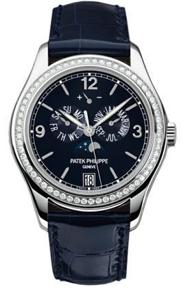 Model: 5147G - CASE = [Material:18kt White Gold], [Case Diameter:39], [Case Thickness:11.5mm], [Bezel:Fixed], [Water Resistant:30 Meters - 100 Feet], [Crystal:Scratch Resistant Sapphire], DIAL = [Color:Blue with Month and Day Subdials], MOVEMENT = [Type:Automatic], [Crown:Push In], BAND = [Clasp:Deployment], [Type:Blue Alligator Leather], (Usually ships in 1 to 2 business days.)