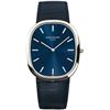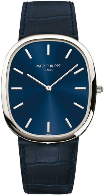 Model: 5738P-001 - CASE = [Material:Platinum], [Bezel:Platinum], [Case Back:Solid], [Water Resistant:30 Meters - 100 Feet], [Crystal:Scratch Resistant Sapphire], DIAL = [Color:Blue], MOVEMENT = [Type:Automatic Self Winding], [Crown:Push In], BAND = [Clasp:Deployment], [Type:Alligator Leather], (Usually ships in 1 to 2 weeks.)