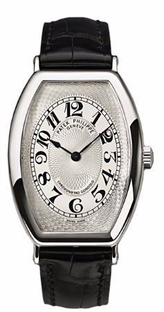 Model: 5098P - CASE = [Material:18kt White Gold], [Case Diameter:32], [Bezel:Fixed], [Case Back:Solid], [Water Resistant:30 Meters - 100 Feet], [Crystal:Scratch Resistant Sapphire],; DIAL = [Color:Silver],; MOVEMENT = [Type:Manual Winding], [Crown:Push In],; BAND = [Clasp:Tang], [Type:Black Leather], (Usually ships in 1 to 2 weeks.)