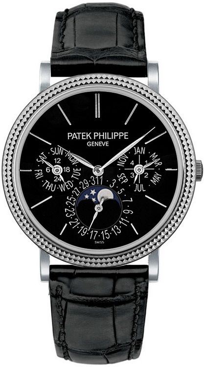 Model: 5139G-010 - CASE = [Material:18kt Whit Gold], [Case Diameter:38], [Bezel:18kt White Gold], [Case Back:Transparent], [Water Resistant:30 Meters - 100 Feet], [Crystal:Scratch Resistant Sapphire], DIAL = [Color:Black], MOVEMENT = [Type:Automatic Self Winding], [Crown:Push In], BAND = [Clasp:Deployment], [Type:Alligator Leather], (Usually ships in 1 to 2 business days.)
