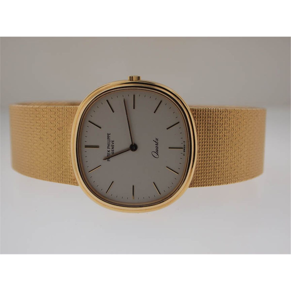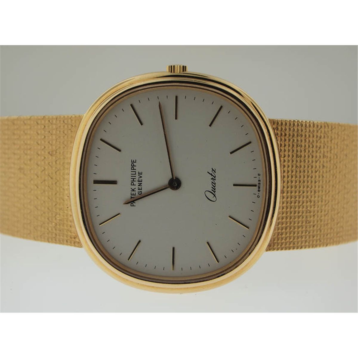 Patek Philippe Mens 18k Gold Quartz. Mesh Bracelet. Ultra Thin Movement. Patek Philippe, Mens, 18k Gold, Quartz Movement, Ultra Thin Movement, Mesh Bracelet, Swiss Made, Beautiful Condition, Pre-Owned.