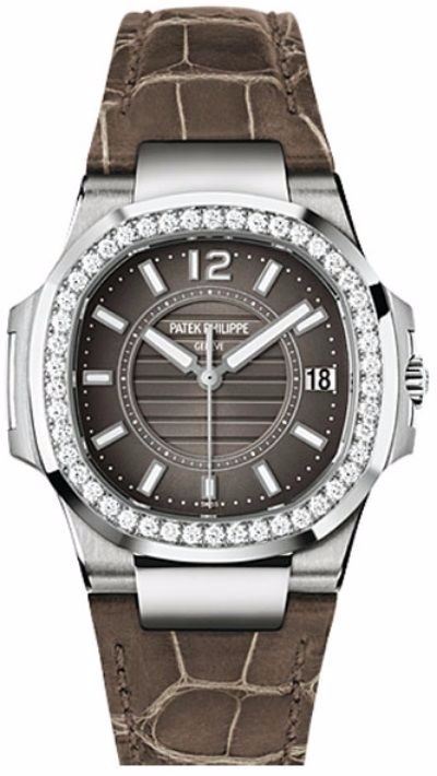 Model: 7010G-010 - CASE = [Material:18kt White Gold], [Case Diameter:32], [Bezel:18kt White Gold and Diamonds], [Case Back:Solid], [Water Resistant:60 Meters - 200 Feet], [Crystal:Scratch Resistant Sapphire],; DIAL = [Color:Anthracite],; MOVEMENT = [Type:Battery Powered Quartz], [Crown:Screwed Down],; BAND = [Clasp:Deployment], [Type:Alligator Leather], (Usually ships in 1 to 2 weeks.)