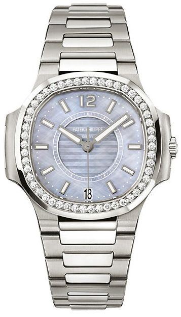 Model: 7008/1A-001 - CASE = [Material:Stainless Steel], [Case Diameter:33.6], [Bezel:Diamonds on Bezel], [Case Back:Solid], [Water Resistant:50 Meters/ 165 Feet], [Crystal:Scratch Resistant Sapphire Crystal], DIAL = [Color:Blue Tinted Mother of Pearl], MOVEMENT = [Type:Automatic Self Winding], BAND = [Clasp:Foldover], [Type:Stainless Steel], (Usually ships in 1 to 2 weeks.)