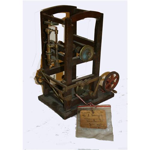 Patent Model - Bronzing Machine - This patent model comes with a tag which identifies it as #61,550 G. L. Mayes Bronzing Machine, Patented Jan. 29th 1867.  Measures approximately 8" x 6" x 12" T.