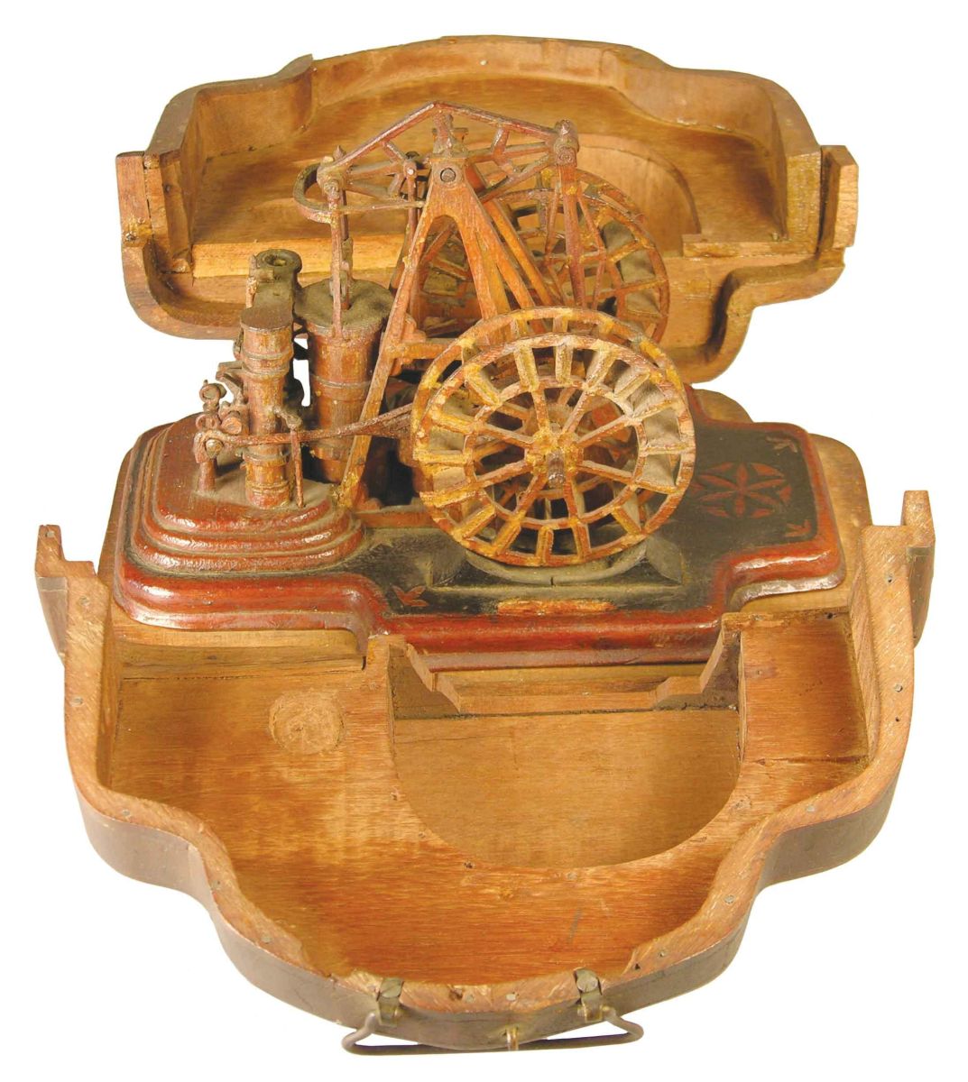 Patent Model Dual Paddle Wheel for a Steam Boat. Comes in original carrying case. A few small pieces broken but can be repaired otherwise very good condition. Model measures 8 X 5 1/2 X 5 1/2 inches.