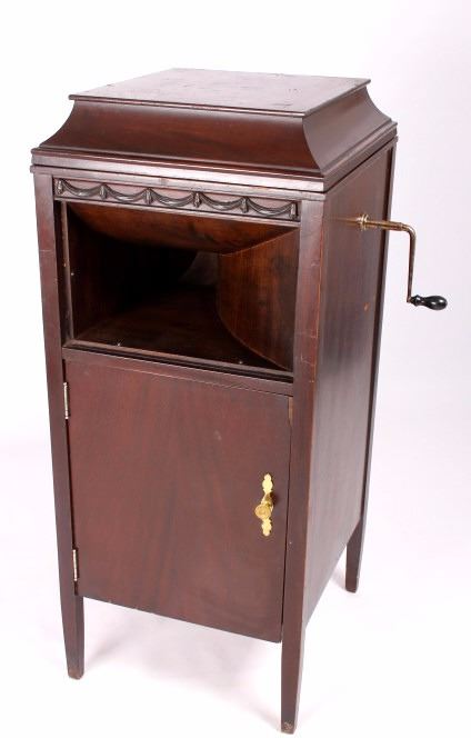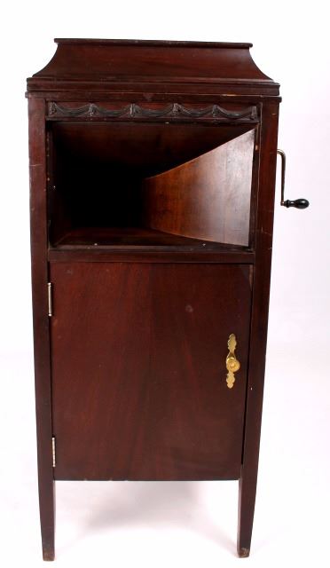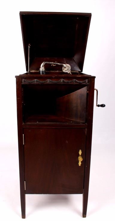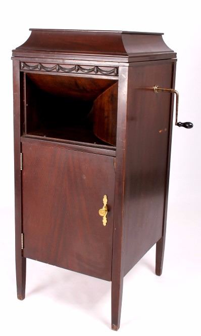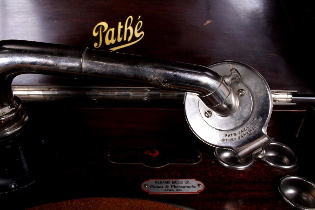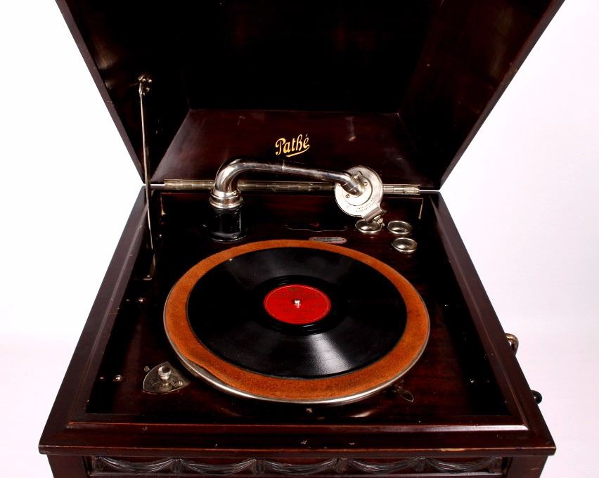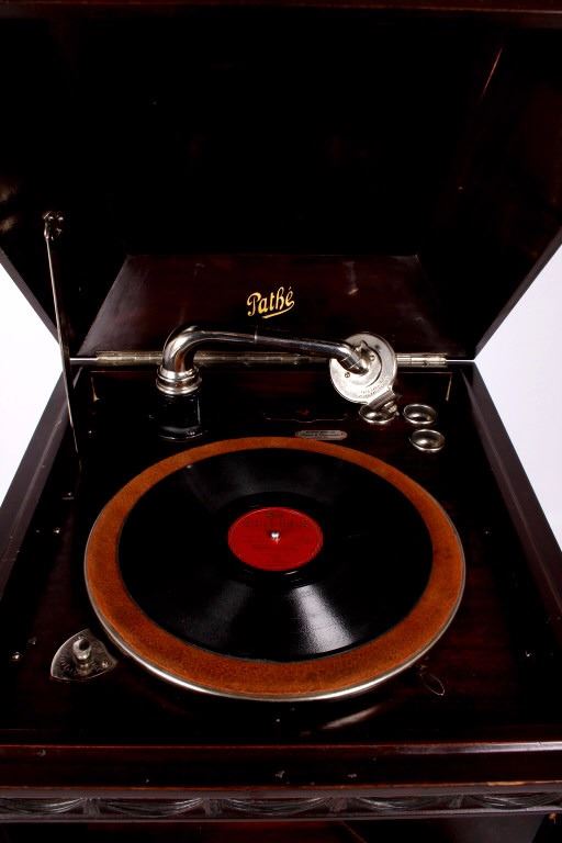 You are bidding on a circa 1910 Pathe Freres cabinet model phonograph. The cabinet is stained mahagony and does have some chips and scratches. It comes with a collection of antique records.