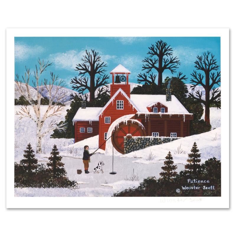 "Patience" is a limited edition lithograph on paper by Jane Wooster Scott, numbered and hand signed by the artist. Includes Letter of Authenticity. Measures approx. 13" x 10" (border), 11.5" x 9" (image).