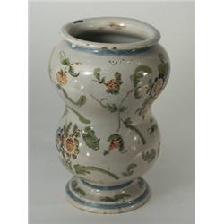 Színesen festett fajansz. Szájperemén csorbulások. Alján donációs felirat. Magyar, XIX. sz. m.: 16,5 cm
