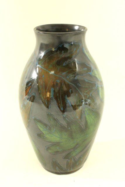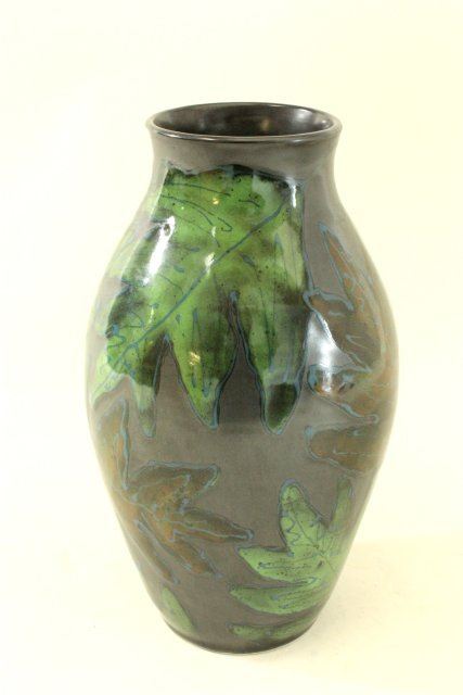 Leaf motif. Signed bottom. Approx. 12 1/2" H.
