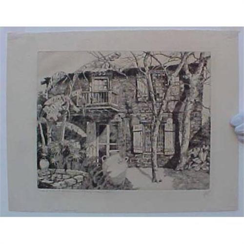 Original artist signed etching with a title of "Patio" Old Toledo House, St Augustine, Fla. Alfred Heber Hutty and Louis Kronberg were Locke's mentors. He was a Florida based artist but did work else-where in the country. This work was done in 1937. Image size 9 1/16 inches X 11 3/8 inches. Edition of 250. Artist signed lower right with date.
