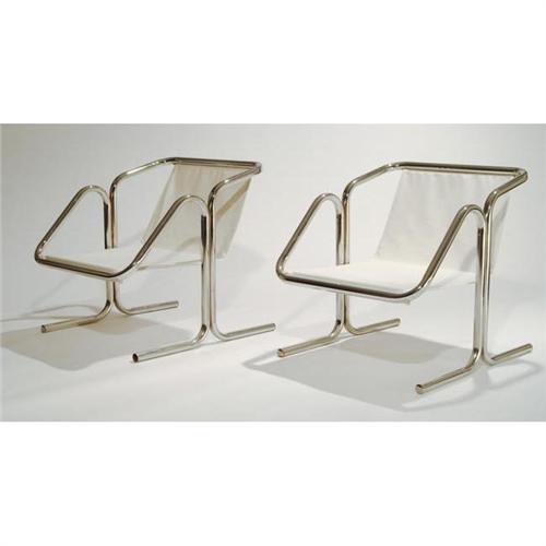 27h x 26w x 20d inches, chrome plated metal and linen fabric, perfect condition