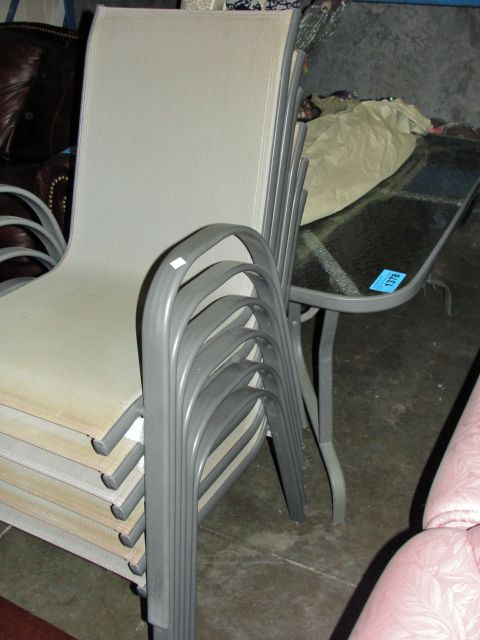 Patio set; table with 6 chairs and umbrella