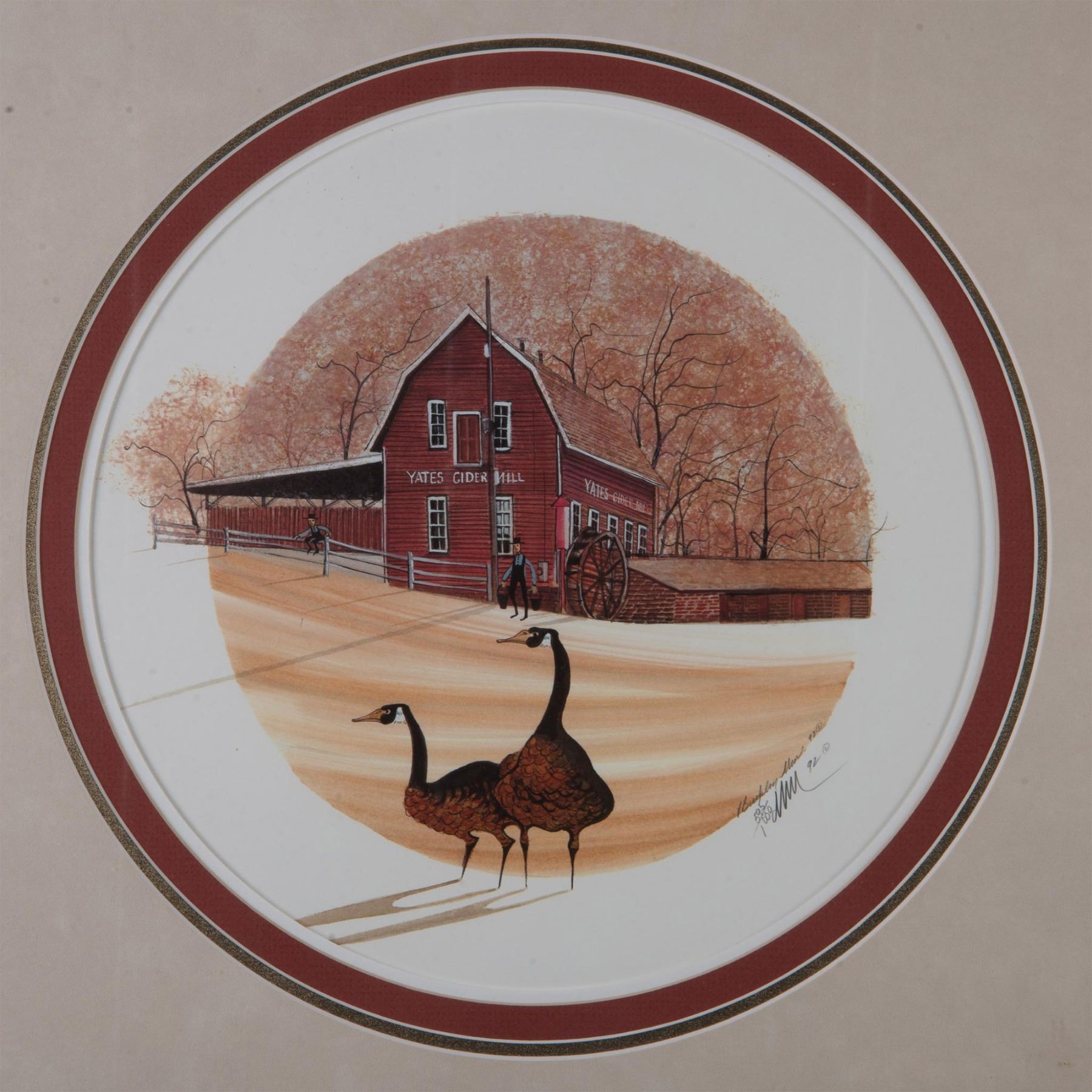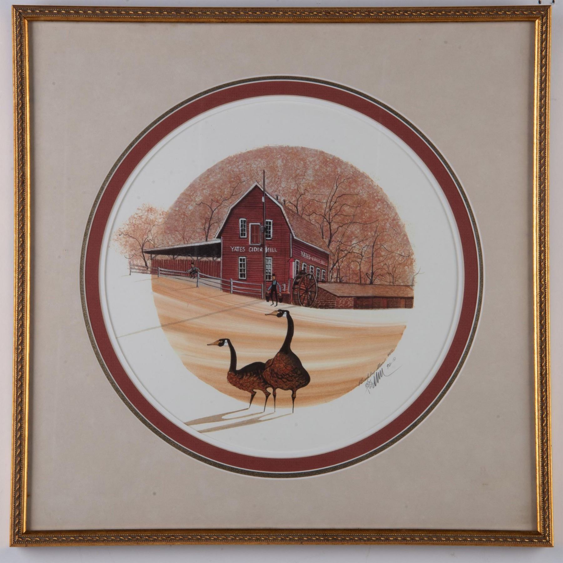 Signed limited edition print on paper. A summer at Yates Cider Mill, which is regarded as a joyful family destination. Titled Summer at Yates Cider Mill. Artist signature, date, and number in the lower right. Sight dimensions: 12"L x 12"H. Frame dimensions: 18"L x 18"H x 1"D. Artwork can be unframed and rolled for shipment.