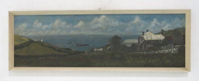 Oil on board. Seascape. Signed & dated 1970 lower left. Patricia Fishwick, British (b.1929). Approx. 11" x 25" unframed, 13" x 37" framed.