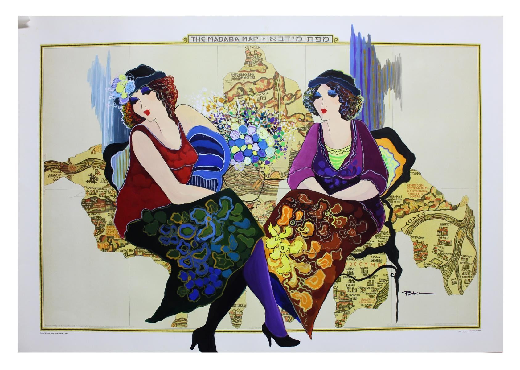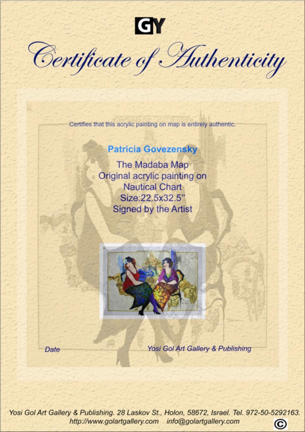 Artist: Patricia Govezensky. Medium: Original Acrylic Painting on Nautical Chart. Title: The Madaba Map. Size (Unframed): 22.5" x 32.5". Certificate of Authenticity: From the publisher. Reference# 10338.