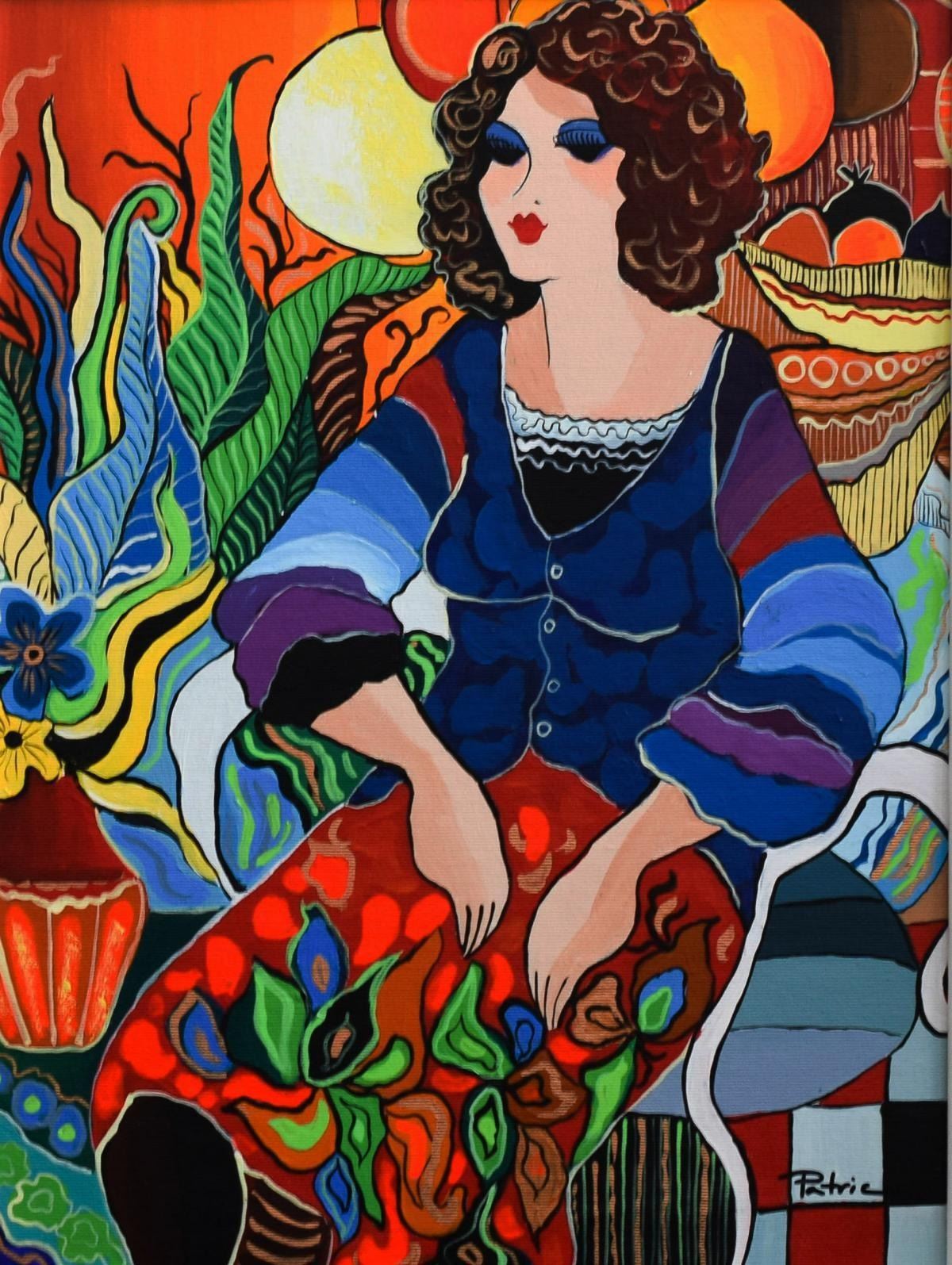 Artist: Patricia Govezensky. Medium: Original Acrylic on Canvas. Title: Priscilla. Size (Unframed): 16" x 12". Size (Framed): 21" x 17". Certificate of Authenticity: From the publisher. Reference# 12350.