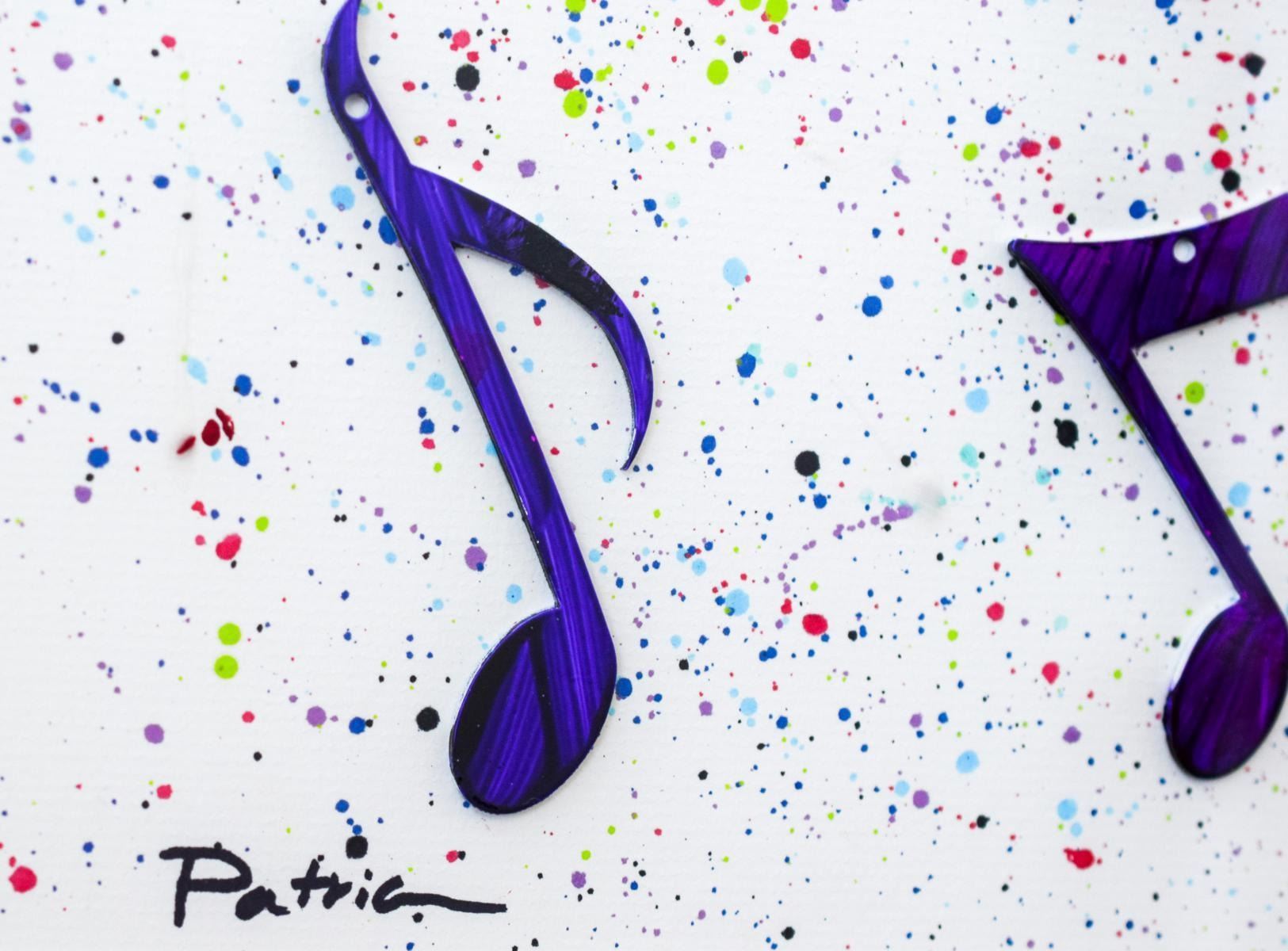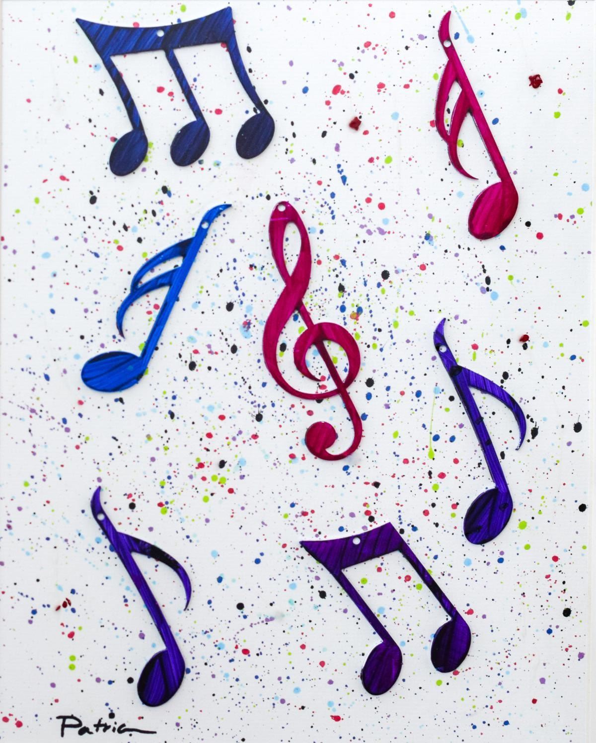 Artist: Patricia Govezensky. Medium: Original Collage Painting. Title: Music Notes I. Size (Unframed): 14" x 11". Size (Framed): 24.5" x 20.5". Certificate of Authenticity: From the publisher. Reference# 11516.