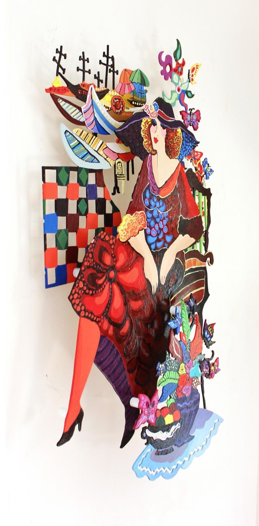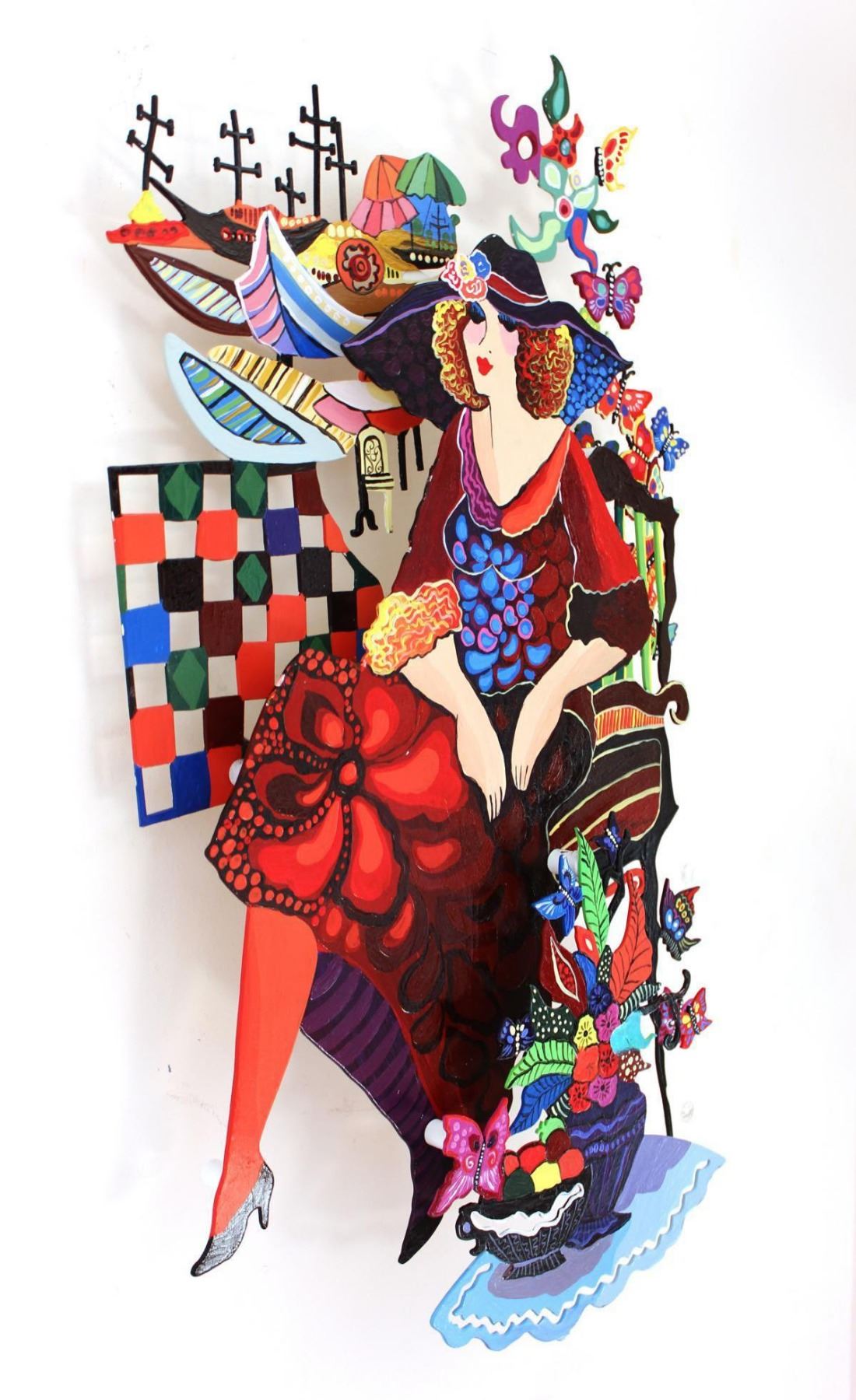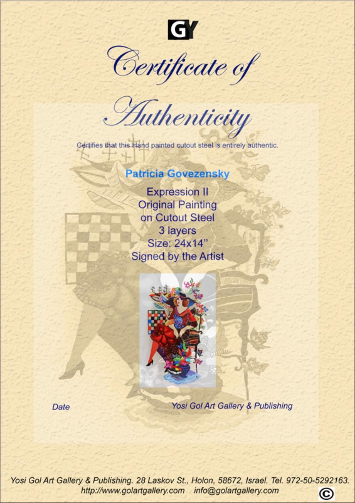 Artist: Patricia Govezensky. Medium: Original Painting on Cutout Steel. Title: Expression. Size (Unframed): 24" x 14". Certificate of Authenticity: From the publisher. Reference# 10608.