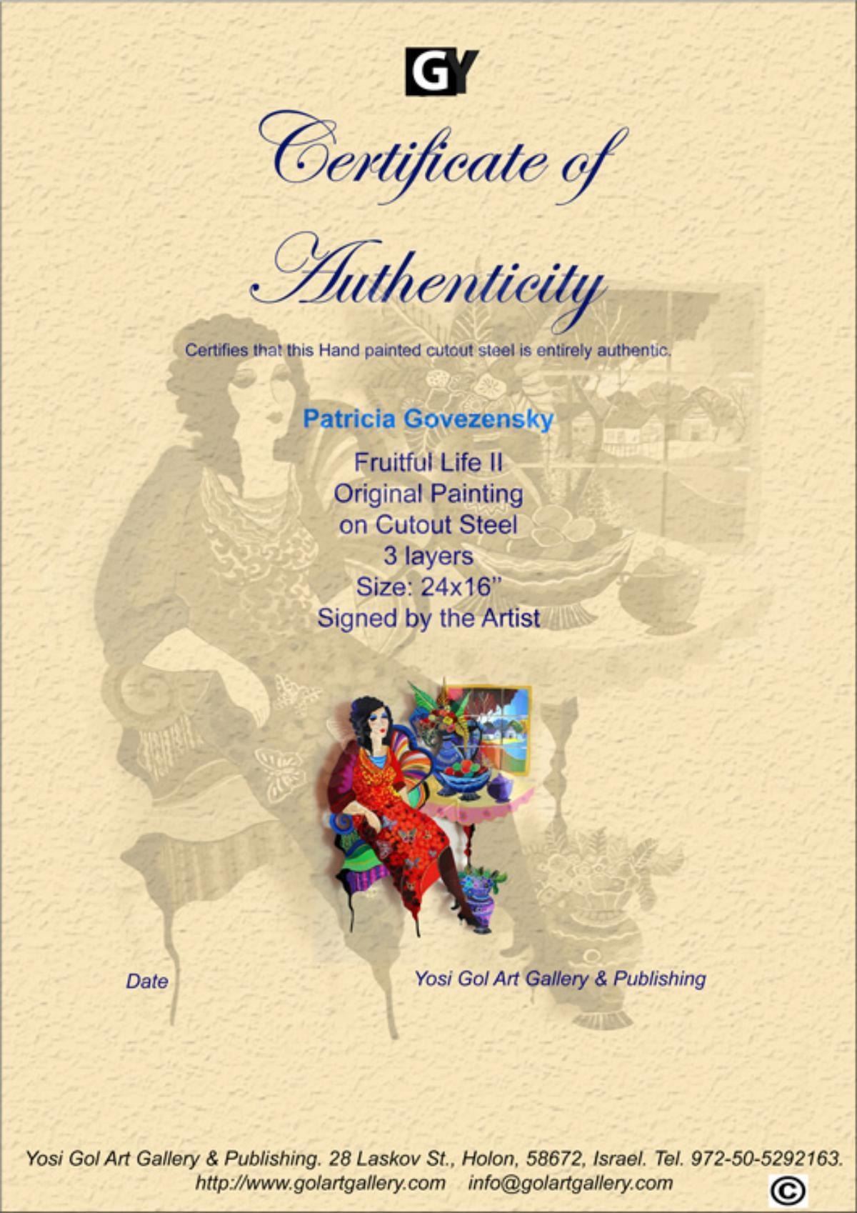 Artist: Patricia Govezensky. Medium: Original Painting on Cutout Steel. Title: Fruitful Life II. Size (Unframed): 24" x 16". Certificate of Authenticity: From the publisher. Reference# 10118.
